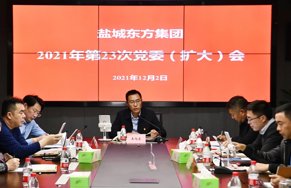 12月2日下午,鹽城東方集團在集團七樓1號會議室召開黨委(擴大)會議,集團黨委書記、董事長、總經理王旭東主持會議并講話。集團黨委領導班子成員出席會議,集團總會計師列席會議,中層以上人員、子公司經營層參加會議。