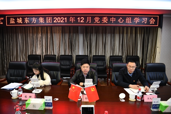 12月7日上午,鹽城東方集團黨委組織召開12月黨委中心組學習會議,深入學習黨的十九屆六中全會精神、省第十四次黨代會精神。區黨政辦主任孫華同志,區黨工委黨史學習教育領導小組巡回指導組嵇珊同志到會巡聽。會議由集團黨委書記、董事長、總經理王旭東同志主持。集團黨委班子成員參加會議,集團總會計師列席會議。