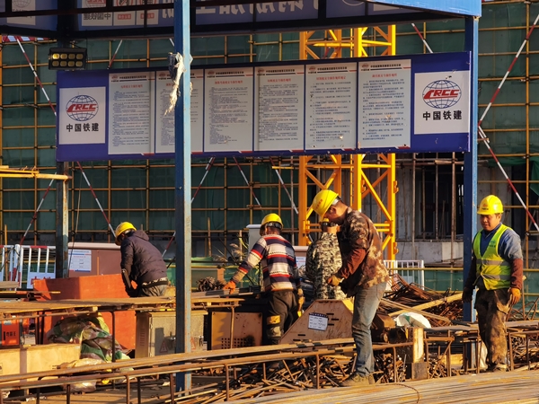 工人們有的忙著綁扎鋼筋、有的忙著支模板,個個精神飽滿,現場處處熱火朝天。項目上下統一思想、加強配合,嚴格按照規劃要求和時間節點,倒排工期、全力以赴加快安置房建設進度,用時間贏得民心。