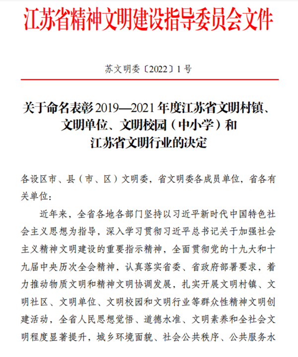 近日,江蘇省精神文明建設指導委員會下發《關于命名表彰2019-2021年度江蘇省文明村鎮、文明單位、文明校園(中小學)和江蘇省文明行業的決定》。鹽城東方集團被授予“省級文明單位”榮譽稱號。這是集團繼獲評“市級、區級文明單位”之后,首次榮獲“省級文明單位”殊榮。
