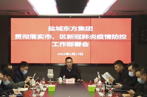 2月17日,鹽城東方集團在7樓一號會議室召開貫徹落實市、區新冠肺炎疫情防控工作部署會,對疫情防控工作進行再部署、再落實、再強化。集團黨委書記、董事長、總經理王旭東主持會議并講話。集團黨委領導班子成員出席會議,集團總會計師列席會議,中層以上人員、子公司經營層參加會議。
