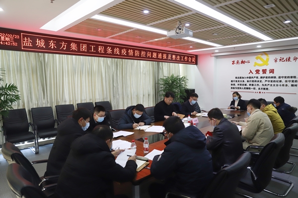 會上,集團(tuán)工程部負(fù)責(zé)人通報(bào)了在建項(xiàng)目復(fù)產(chǎn)復(fù)工返崗人員及中高風(fēng)險區(qū)來鹽人員統(tǒng)計(jì)調(diào)查情況和《疫情防控督查通報(bào)》;集團(tuán)防疫辦負(fù)責(zé)人傳達(dá)學(xué)習(xí)上級防疫部門相關(guān)指示精神與工作要求;未來科技城北區(qū)和西區(qū)、鹽城國際會展中心改擴(kuò)建工程、尚德商務(wù)樓、鳳棲苑、德喜大橋、新建天合國能配套污水管道工程、市政配套等項(xiàng)目負(fù)責(zé)人就所負(fù)責(zé)項(xiàng)目當(dāng)前防疫工作進(jìn)行表態(tài)發(fā)言;東方建設(shè)、地產(chǎn)公司經(jīng)營層領(lǐng)導(dǎo)就節(jié)后復(fù)工、疫情防控提出具體要求。