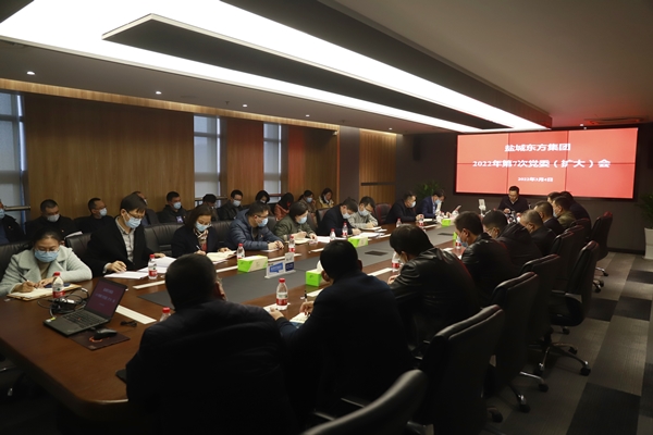 3月4日下午,鹽城東方集團在集團七樓1號會議室召開黨委(擴大)會議,集團黨委書記、董事長、總經理王旭東主持會議并講話。集團黨委領導班子成員出席會議,集團總會計師列席會議,中層以上人員、子公司經營層參加會議。