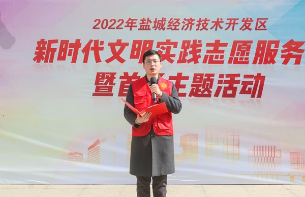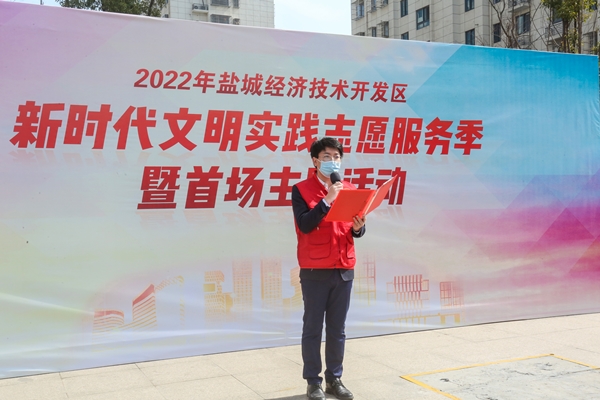 集團志愿者周毅宣讀了鹽城經(jīng)濟技術(shù)開發(fā)區(qū)新時代文明實踐志愿服務(wù)季倡議書。