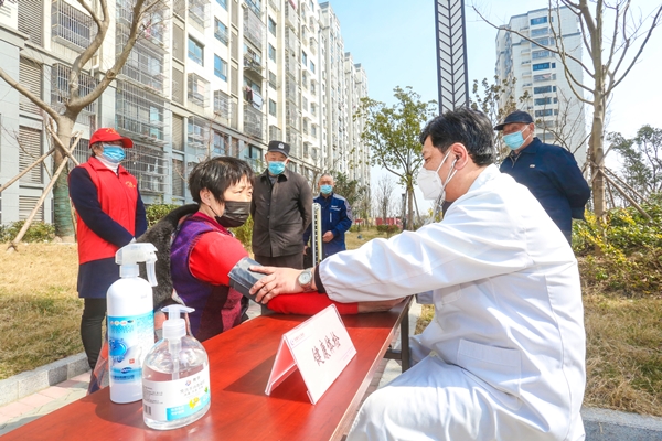 人氣最高的是“健康體檢”點位,社區(qū)醫(yī)生現(xiàn)場為居民量血壓,提供健康義診服務(wù),針對咨詢較多的高血壓、高血糖等常見疾病問題,為居民提供具體的治療建議。
