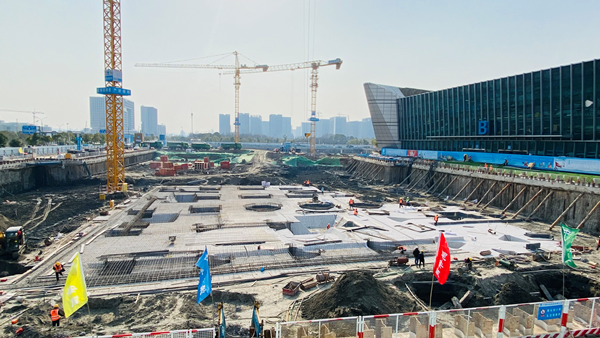 “明年3月大家就能看到改擴建工程實施到位后,國際會展中心的‘新顏值’。”項目負責人陶偉國介紹說,當前,正搶抓春季黃金施工期,采取日夜兼施的工作方式,加快項目建設進度。截至目前,D館樁基工程完工,土方開挖完成,底板澆筑完成60%;EF館樁基工程完工,土方開挖完成80%;高教公寓商圈消防站完工。力爭今年底主體完工。