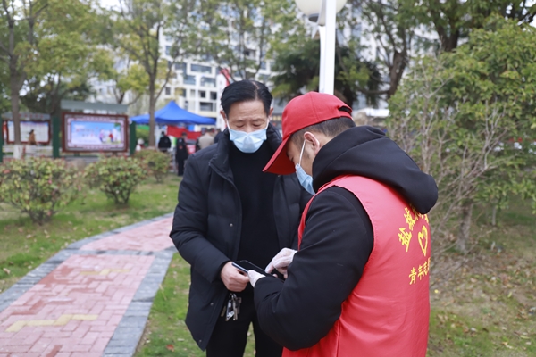 “大爺,您帶身份證了是嗎?”“小伙子,我用的不是智能手機,也不能上網,你看看我怎么做核酸?”在陽光社區中心花園核酸采樣的隊伍中,志愿者孫偉站在隊伍不遠處,認真觀察手中持有身份證前來的老年人,主動上前詢問。