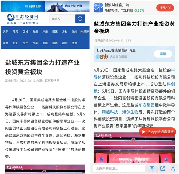 近日,《今日頭條》《交匯點(diǎn)》《新華報(bào)業(yè)網(wǎng)》《江蘇經(jīng)濟(jì)網(wǎng)》《新浪財(cái)經(jīng)》等多家主流媒體聚焦報(bào)道鹽城東方集團(tuán)全力打造產(chǎn)業(yè)投資黃金板塊,持續(xù)提升核心競爭力和盈利能力,助推國企實(shí)現(xiàn)高質(zhì)量跨越式發(fā)展。
