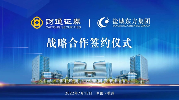 他表示,財通證券作為一家綜合性證券控股集團,有幸結(jié)識國企市場化轉(zhuǎn)型標桿——鹽城東方集團,期待借助本次簽約合作契機,進一步發(fā)揮金融主體功能,與鹽城東方集團在境內(nèi)外募資、產(chǎn)業(yè)招投、招商引資、資產(chǎn)證券化等專業(yè)領(lǐng)域密切合作,讓金融活水與產(chǎn)業(yè)優(yōu)勢強強聯(lián)合、共促共榮,讓杭、鹽兩地強產(chǎn)業(yè)、促投資、謀發(fā)展的源泉充分涌流。