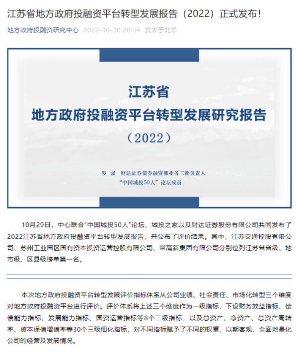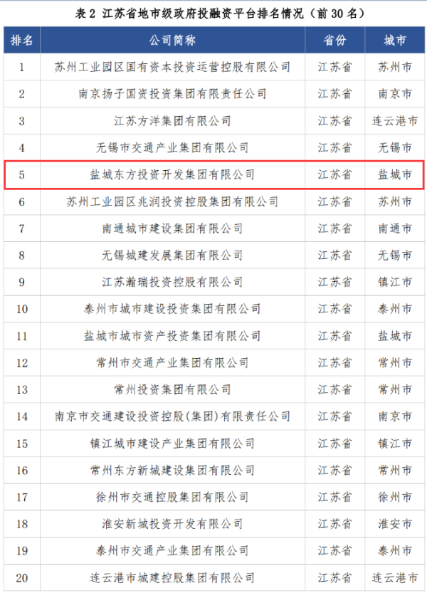 10月30日,從地方政府投融資研究中心官方傳來捷報:在其聯合“中國城投50人”論壇、城投之家等共同發布的“江蘇省地方政府投融資平臺轉型發展報告(2022)”中,鹽城東方集團位列地市級投融資平臺第五位、較去年同期提升四個位次,再次刷新了在全省同類國企中的排名記錄。這是對該集團全面貫徹新發展理念,蹚出服務大局與轉型發展并舉、深耕主業和深化改革齊驅的高質量發展新路的充分褒獎。