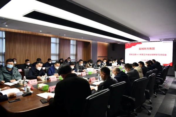 1月12日下午,鹽城東方集團(tuán)在集團(tuán)7樓1號(hào)會(huì)議室召開(kāi)學(xué)習(xí)討論會(huì),第一時(shí)間學(xué)習(xí)貫徹區(qū)黨工委2023年度工作會(huì)議精神。集團(tuán)黨委書(shū)記、董事長(zhǎng)、總經(jīng)理王旭東主持會(huì)議并講話。集團(tuán)領(lǐng)導(dǎo)班子成員出席會(huì)議,集團(tuán)中層以上人員、子公司經(jīng)營(yíng)層負(fù)責(zé)人參加會(huì)議。