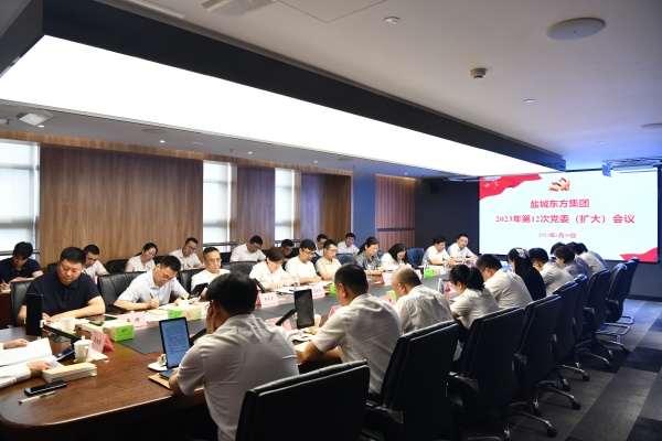 6月30日,鹽城東方集團在集團七樓會議室召開黨委(擴大)會議,集團黨委書記、董事長、總經理王旭東主持會議并講話。集團黨委領導班子成員出席會議,集團總會計師列席會議,中層以上人員、子公司經營層負責人參加會議。