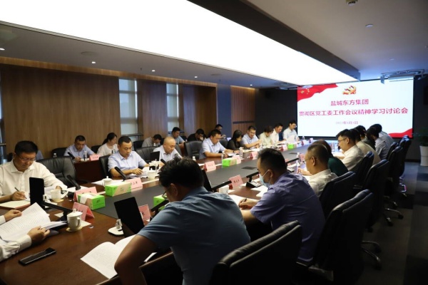 8月1日下午,鹽城東方集團在集團7樓1號會議室召開學習討論會,第一時間學習貫徹區黨工委工作會議精神,并結合實際研究部署下階段重點工作。集團黨委書記、董事長、總經理王旭東主持會議并講話。集團領導班子成員出席會議,集團中層以上人員、子公司經營層負責人參加會議。
