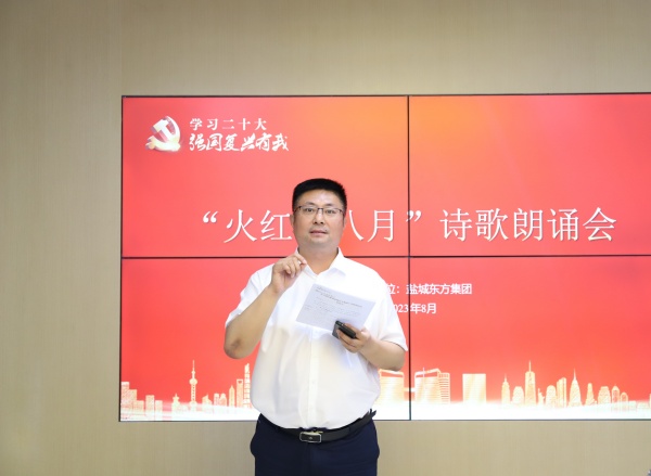 8月3日上午,鹽城東方集團(tuán)黨委在東方黨建館舉辦了“強(qiáng)國(guó)復(fù)興有我”經(jīng)典詩(shī)歌朗誦會(huì)。集團(tuán)黨委委員、副總經(jīng)理吳將出席活動(dòng),集團(tuán)40余名黨員及干部職工參加此次活動(dòng)。