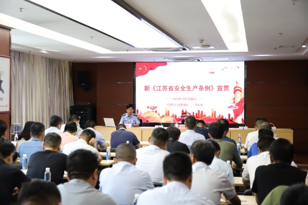 為持續(xù)做好集團安全生產(chǎn)工作,牢固樹立安全發(fā)展理念,準(zhǔn)確理解和執(zhí)行新修訂《江蘇省安全生產(chǎn)管理條例》新規(guī)定、新內(nèi)容。8月3日下午在1012會議室,集團組織召開鹽城東方集團《江蘇省安全生產(chǎn)條例》專題培訓(xùn)學(xué)習(xí),特邀請安全生產(chǎn)領(lǐng)域?qū)<揖托滦抻啑l例重點內(nèi)容進行現(xiàn)場培訓(xùn)。集團工程管理部、資產(chǎn)管理部、東方建設(shè)、市政、地產(chǎn)、園林、物業(yè)、安通、水務(wù)等部門及子公司相關(guān)人員參加了本次學(xué)習(xí)培訓(xùn)。