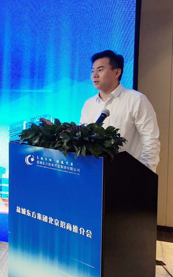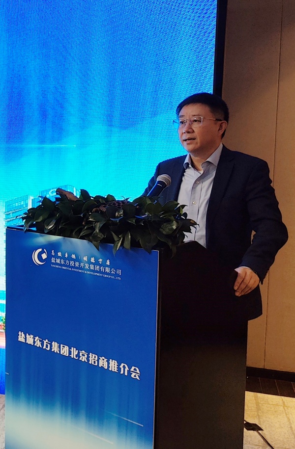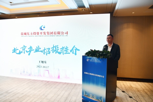 在推介會(huì)現(xiàn)場(chǎng),王旭東從區(qū)位優(yōu)勢(shì)、產(chǎn)業(yè)特色、營(yíng)商環(huán)境、優(yōu)惠政策等方面,全面介紹了鹽城、鹽城經(jīng)開(kāi)區(qū)相關(guān)情況,并推介了鹽城東方集團(tuán)的基本情況和產(chǎn)業(yè)招投合作意愿。