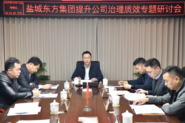 3月15日下午,鹽城東方集團黨委書記、董事長、總經理王旭東在集團1121會議室主持召開提升公司治理質效專題研討會,要求深入推進新一輪國有企業(yè)改革,加強黨的全面領導,持續(xù)提升治理效能,全面增強企業(yè)核心競爭力。