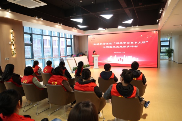 為進一步弘揚網絡主流價值,擴大文明創建網絡覆蓋面和影響力,扎實推進網絡文明建設工作,3月27日,鹽城東方集團在中韓(鹽城)產業園未來科技城新時代文明實踐點開展以“網絡安全 共享文明”為主題的網絡文明建設活動,積極營造文明上網、誠信用網的良好氛圍。