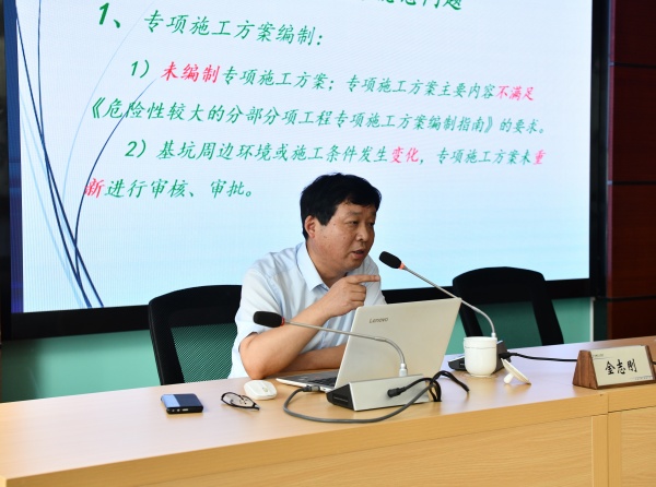 根據“安全生產月”活動安排,6月25日下午,集團邀請鹽城市工程建設監理中心有限公司副總經理、研究員級高級工程師金志剛就深基坑及建筑施工消防為工程條線全體人員授課,集團黨委委員、副總經理王成林主持會議。