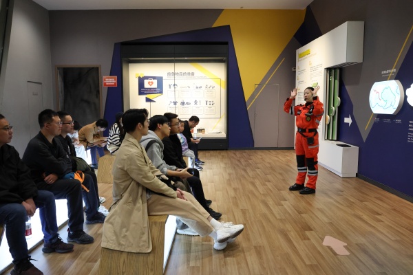 在常州防災避險體驗館大家分別實景模擬體驗了地震避險、地鐵逃生、涉水逃離、火災逃生、心肺復蘇等教學課程。在地震災害區,大家在了解地震基本知識和準備應急物品后,置身1:1還原的“8級強震”環境,模擬在真實情景中地震逃生避險、余震防護、埋壓自救與互救,掌握地震避難時正確的保護姿勢;在氣象災害區大家體驗了遭遇暴雨臺風和顛簸的大巴涉水逃生的情景,學習掌握了正確的避險常識和疏散方法;在交通安全區地鐵車廂內,大家掌握了如何利用列車緊急通話報警,以及如何正確使用安全門手動解鎖和起火逃生的方法;在消防安全區,通過講解員演示和學員實操,大家掌握了防煙面罩、滅火器、逃生繩結的使用等知識;在日常安全和緊急救護區域,大家學習了心腹復蘇、海姆立克急救法等專業知識,并現場進行了實際操作。