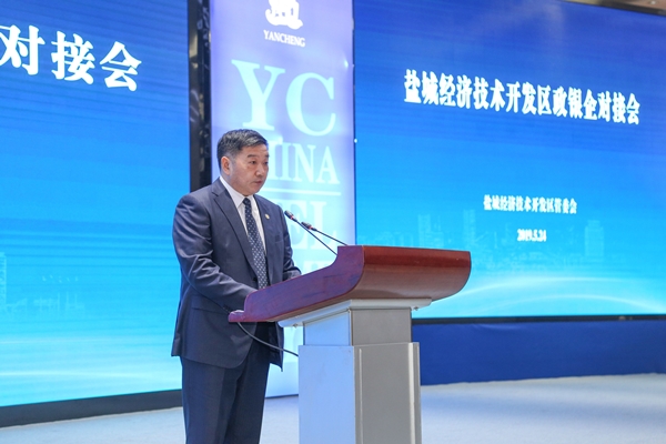 東方集團董事長張振國在區(qū)銀政企對接會上進行推介