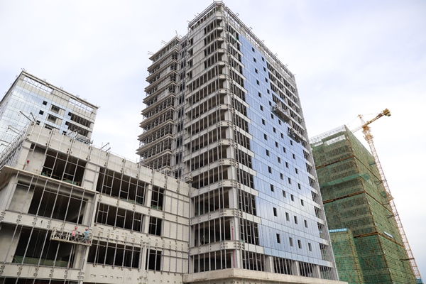 目前,中韓(鹽城)產業園未來科技城項目正如火如荼地進行中,一期C1、C2、C3共計3幢樓已于2018年11月通過單體竣工驗收。目前正在實施的二期中,B1樓和D1—D4樓主體結構封頂,已進入幕墻施工階段,A1、A2樓啟動地下基礎施工,B2、B3樓主體封頂,即將進入幕墻施工。B1樓計劃2020年9月30日完工,B2、B3及D1—D4樓2020年5月20日完工;A1、A2樓2020年6月底完工。二期附屬管道、室外附屬2座橋梁正在施工,目前尚未實施的北區已進入方案調整階段。