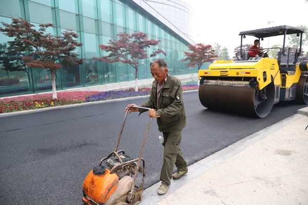 東方市政工作人員徹夜對會展中心西側環形道路進行升級改造為瀝青路面;東方安通按要求將會展中心100多桿景觀燈上破舊的道旗拆除并扶正,排查線路完善亮化,更換新燈罩。完成會展中心樓宇亮化維修并更換6處射燈燈管。同時,對周邊6處公交站臺及45根人行道燈油漆出新,校正會展中心周邊路牙100多處,更換雨水篦子2處,人行道荷蘭磚7處;東方物業清洗噴泉池及室外廣場,修理噴水泵及廣場石材等,并配合做好改造后的全館保潔、零星維修、現場安保、音響及大屏調試等工作。