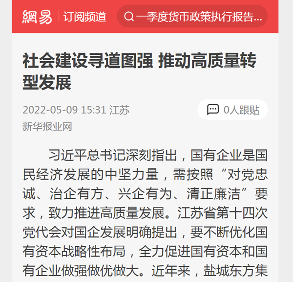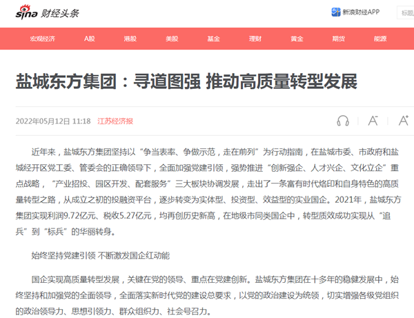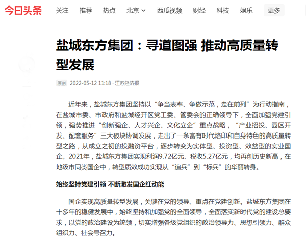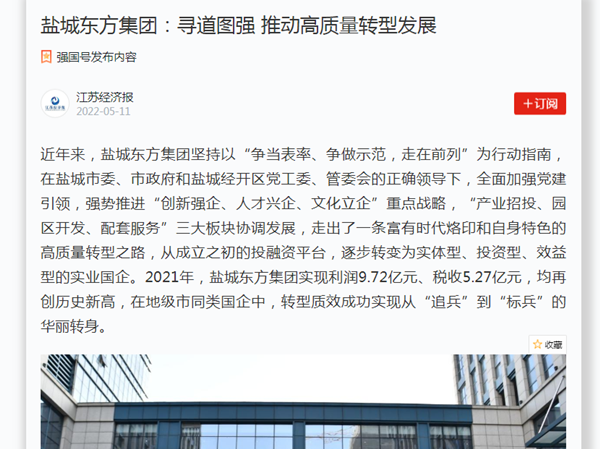 日前,多家主流媒體相繼轉(zhuǎn)載,聚焦鹽城東方集團(tuán)高質(zhì)量發(fā)展成果,分享國(guó)企高質(zhì)量轉(zhuǎn)型發(fā)展的經(jīng)驗(yàn)和路徑。