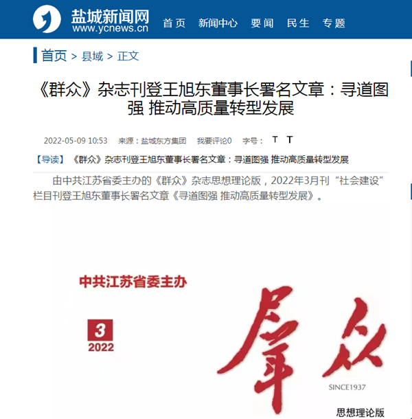近日,《群眾》雜志將鹽城東方集團(tuán),作為國(guó)企典型進(jìn)行報(bào)道,發(fā)表王旭東董事長(zhǎng)署名文章——尋道圖強(qiáng),推動(dòng)高質(zhì)量轉(zhuǎn)型發(fā)展,關(guān)注鹽城東方集團(tuán)堅(jiān)持黨建引領(lǐng),秉持初心勇改革創(chuàng)發(fā)展,跑出高質(zhì)量發(fā)展加速度,受到了業(yè)內(nèi)廣泛關(guān)注。