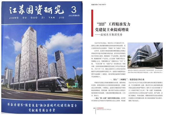 日前,省國有企業發展改革研究會主辦的《江蘇國資研究》雜志6月刊“黨建引領”欄目,發表鹽城東方集團黨委署名文章——《“333”工程精準發力 黨建促主業提質增效》,聚焦鹽城東方集團堅持以高質量黨建引領高質量發展,推進黨建工作和業務工作互融互促的生動實踐。