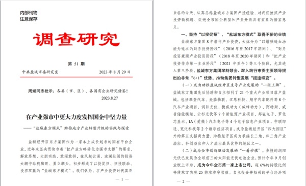 總結提煉的以投促招、招投聯動、投招雙贏的“鹽城東方模式”一文在市委《調查研究》上登載,集團重點工作首次獲得市委主要領導批示肯定,要求各縣(市、區)、各國有企業研究借鑒,并在全市高質量發展觀摩會上印發,產生轟動效應。
