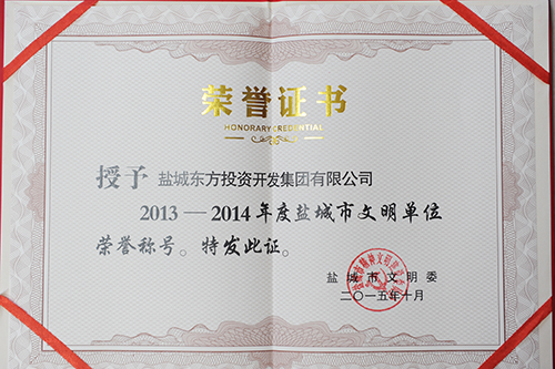 集團榮獲2013-2014年度鹽城市文明單位稱號