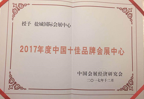 鹽城國際會展中心獲得“2017年度中國十佳品牌會展中心”榮譽稱號