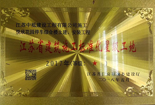 悅欣花園停車綜合樓土建、安裝工程榮獲“2017年度江蘇省建筑施工標(biāo)準(zhǔn)化星級工地”稱號