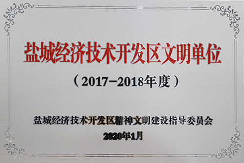 榮獲2017-2018年度鹽城經(jīng)濟技術(shù)開發(fā)區(qū)文明單位。