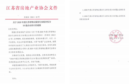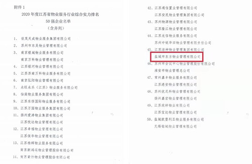 東方物業(yè)公司成功躋身“2020年度江蘇省物業(yè)服務(wù)行業(yè)綜合實力50強企業(yè)”榜單。