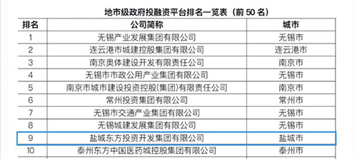 集團轉(zhuǎn)型發(fā)展業(yè)績位列江蘇省地級市政府融資平臺榜單第九位,成為鹽城市唯一一家躋身該榜單前十的國企。