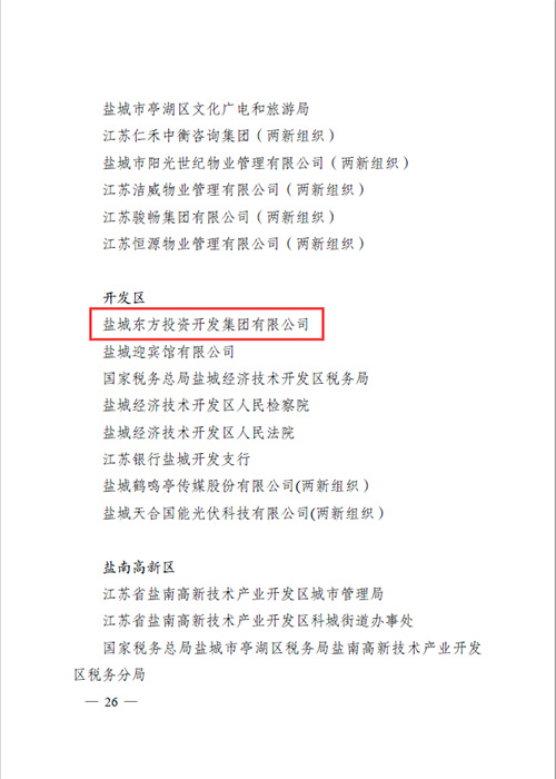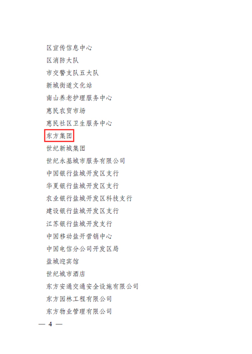 鹽城東方集團獲得“2019—2020年度鹽城經(jīng)濟技術(shù)開發(fā)區(qū)文明創(chuàng)建先進(jìn)集體”榮譽稱號。
