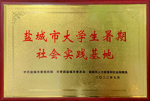獲得中共鹽城市委組織部、共青團鹽城市委員會、鹽城市人力資源和社會保障局聯(lián)合頒發(fā)的“鹽城市大學(xué)生暑期社會實踐基地”稱號。